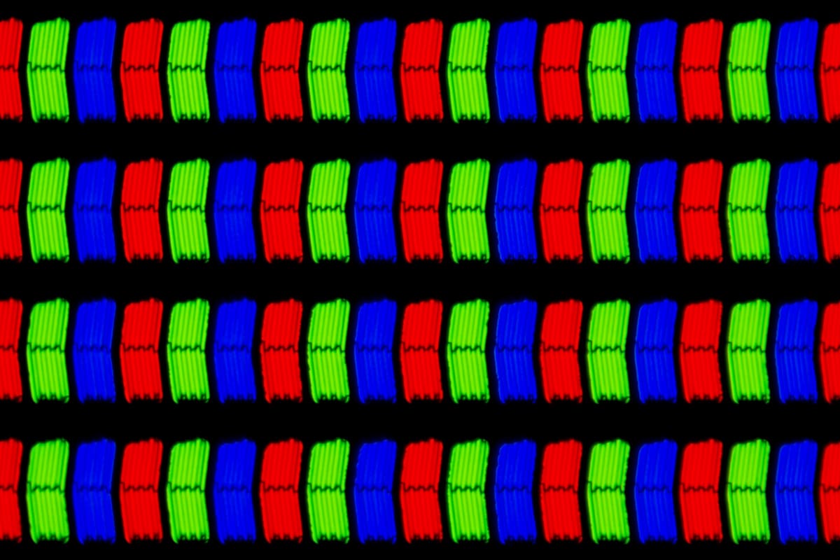 The intensity of each subpixel is controlled. At typical viewing distance, this produces the perceived pixel color.